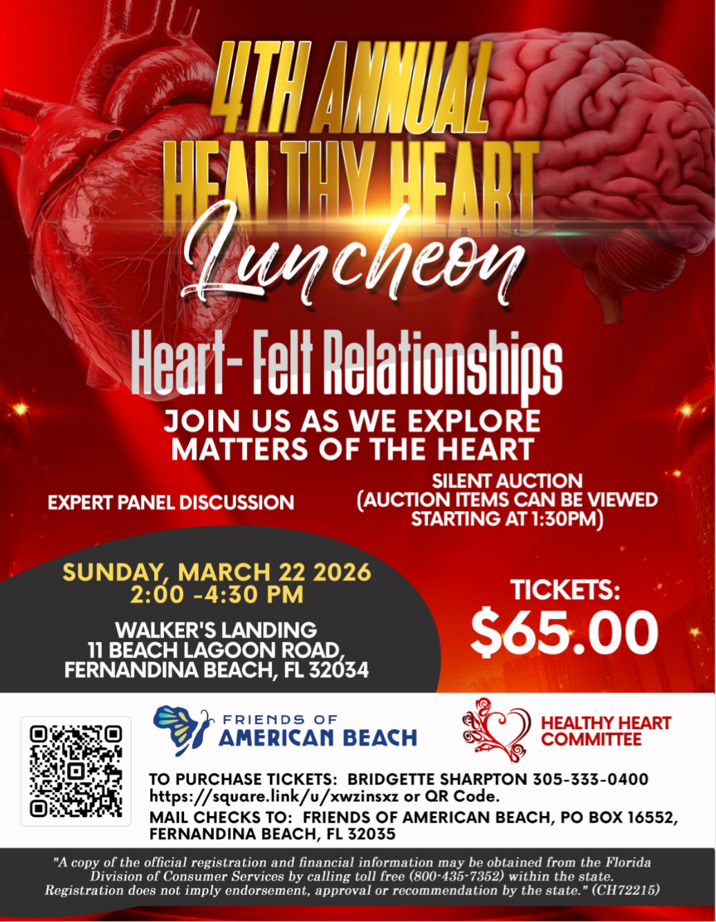 Annual American Beach – HEALTHY HEART LUNCHEON! Sunday, March 22, 2026 Time: 2:00pm – 4:30pm