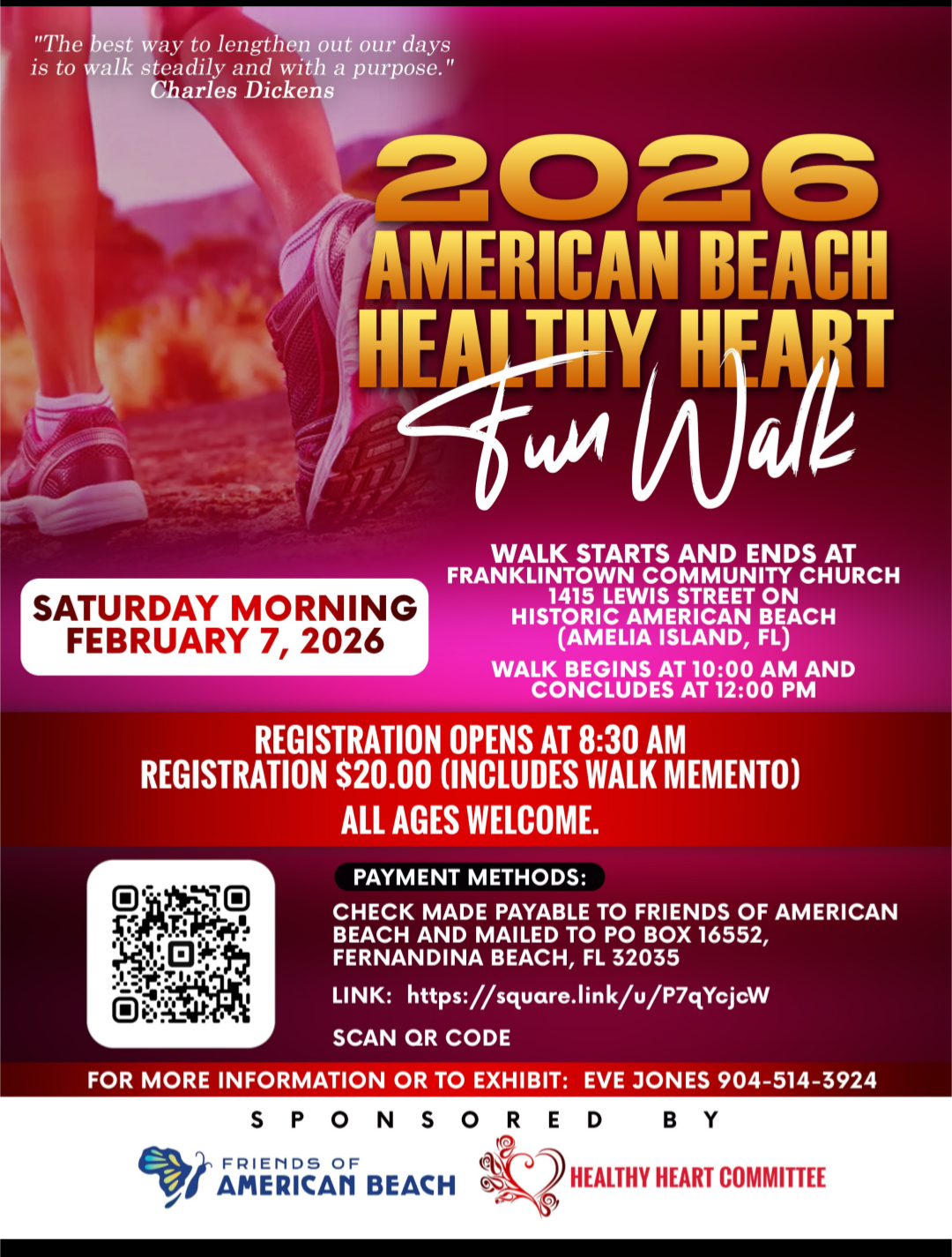 Join us at the Annual American Beach – FUN WALK! Saturday morning, February 7, 2026 Time: 10:00am – 12:00pm
